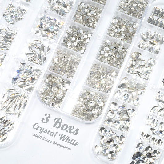 3 Boxes Silver Clear Nail Rhinestones 240 Multi-Shapes Crystal White Big Gems Stones Flatback round Beads Glass Crystals Nail Art Charms for Arylic Nails Face Eyes Makeup Tumblers Bottles Shoes