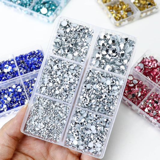 10000PCS Mine Silver Rhinestones for Crafts Shoes Clothes, Silver Flatback Nail Rhinestones, Flat Back Diamond Tumbler Bedazzling Kit, Mixed 2/3/4/5/6Mm Glue Fix Rhinestone Gems